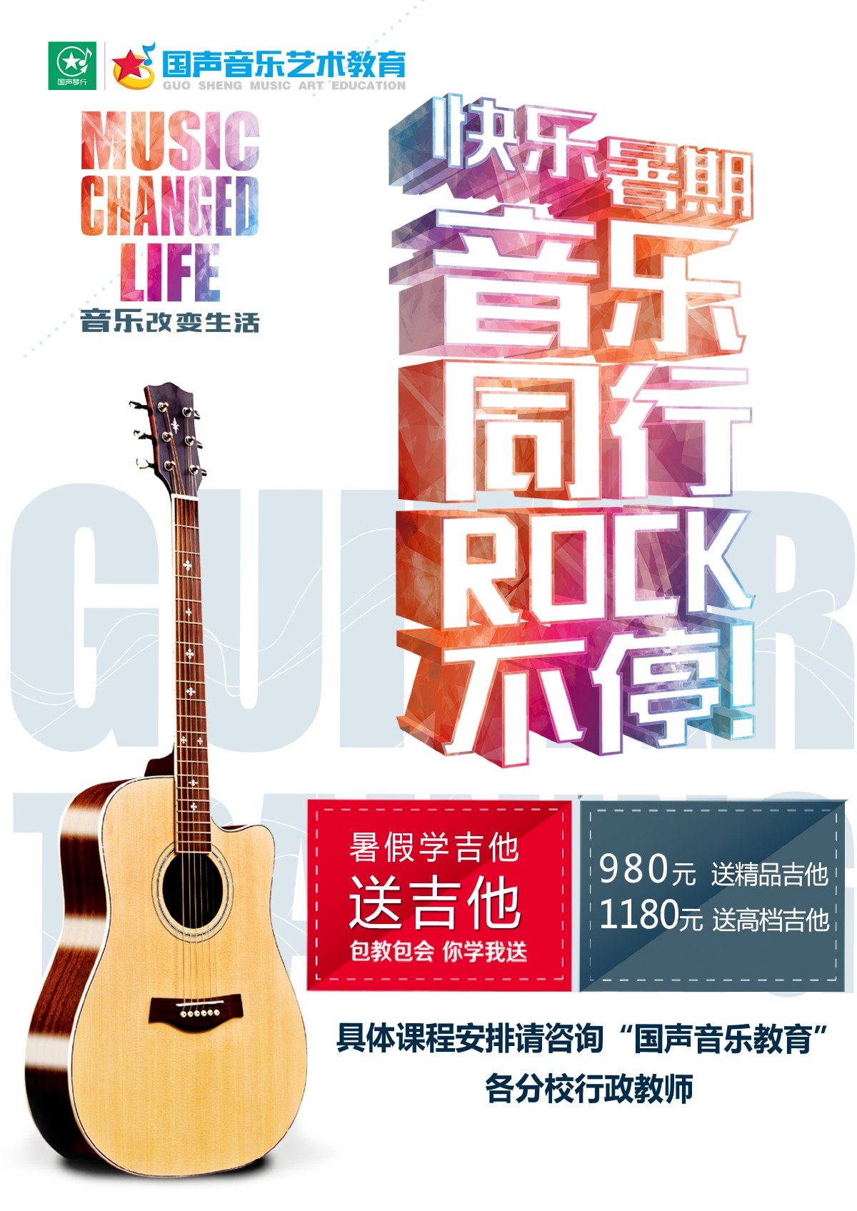 国声音乐十五年感恩钜惠,暑期“学吉他 送吉他”优惠活动正式开始报名啦!