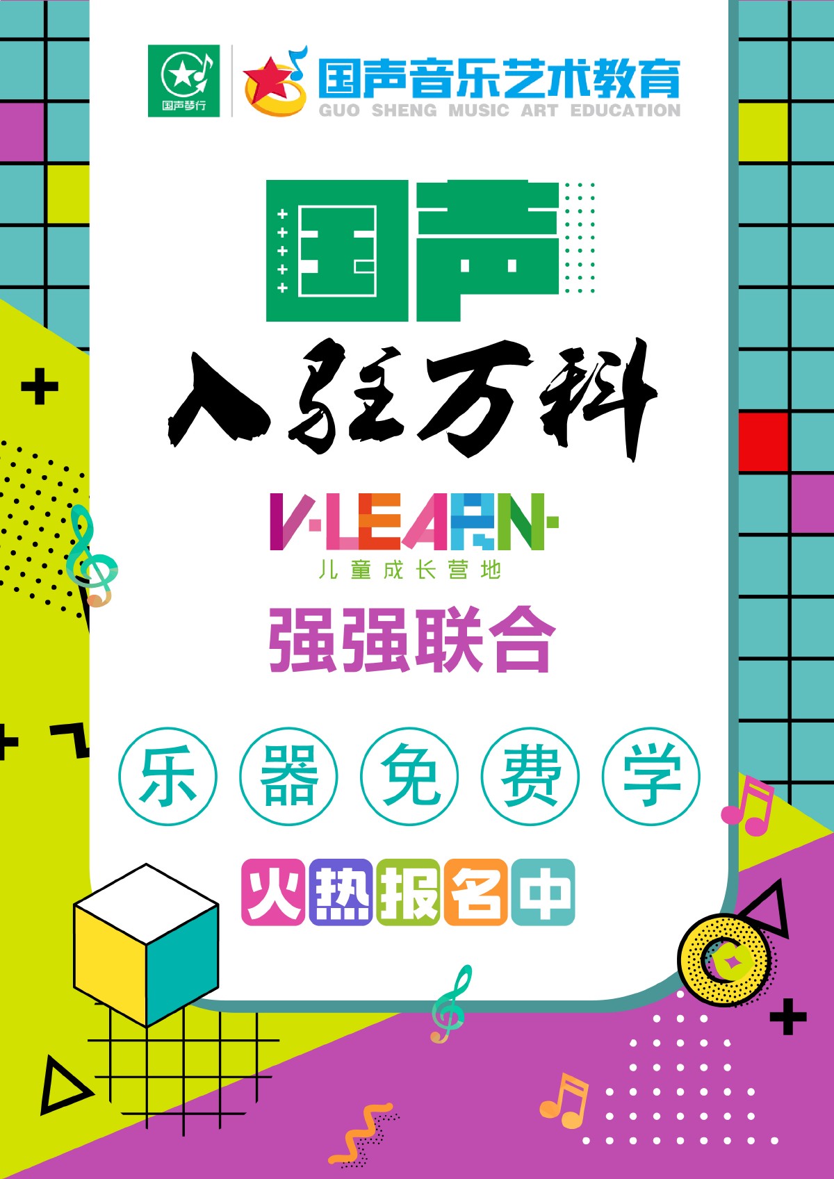 | 国声入驻万科V-Learn儿童成长营地,乐器免费学活动报名开始啦! |